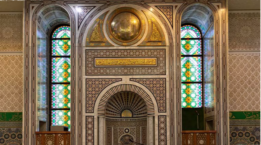 It is marked by its bright white colour and its turquoise dome which paints a wonderful scene especially when the sun shines on it to reflect the beauty of architecture joined with Islamic and traditional constructive art. The beauty of the mosque is not limited to its construction, it is also equipped with advanced sound and lighting technologies, to complement the elements that distinguish it from others with serenity and extreme beauty.